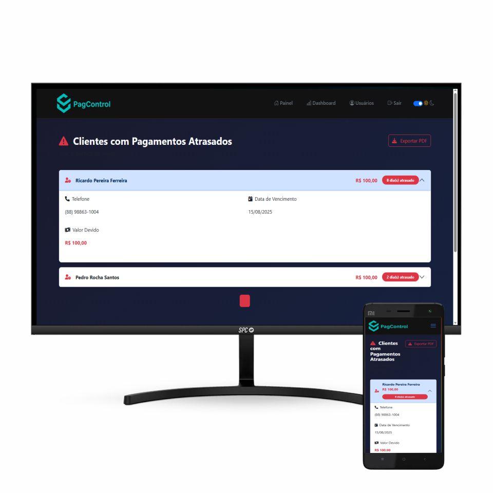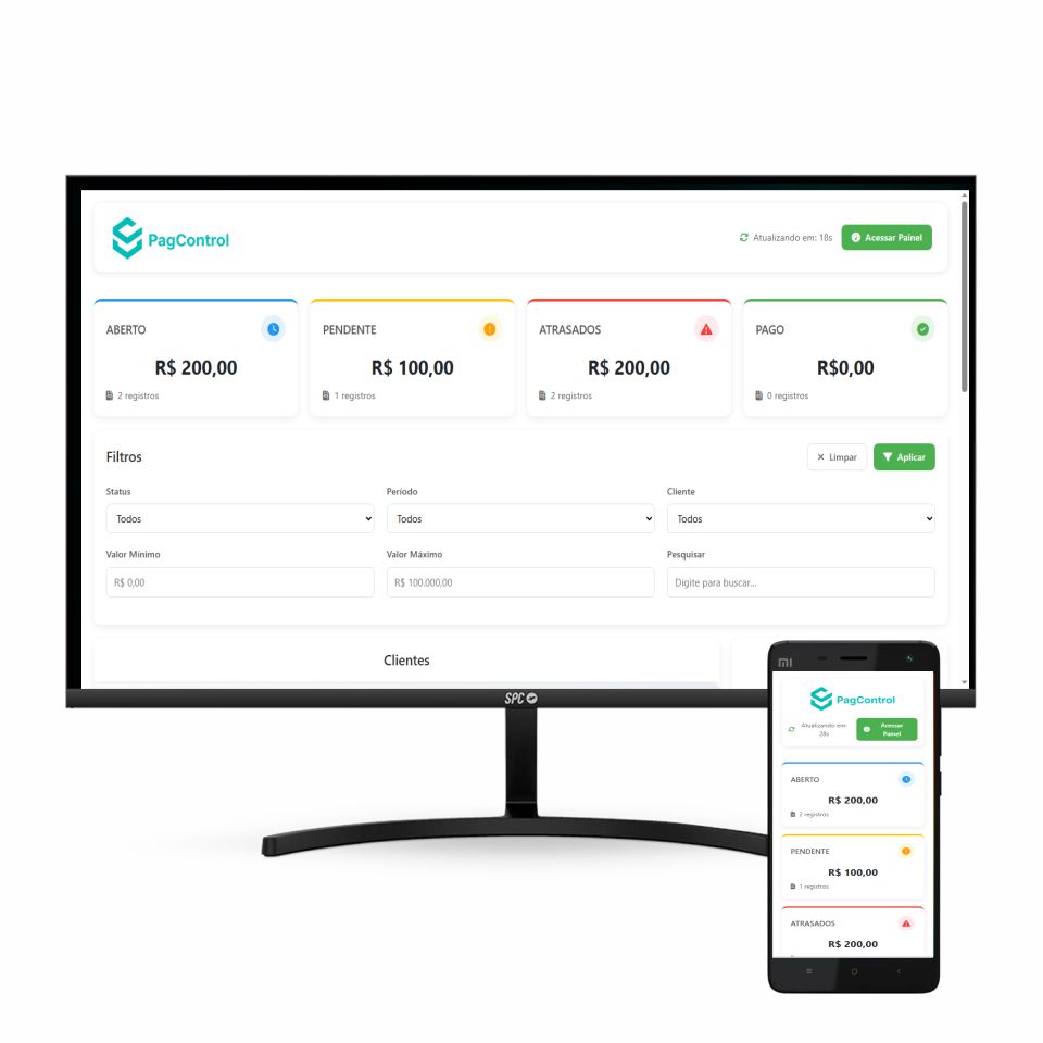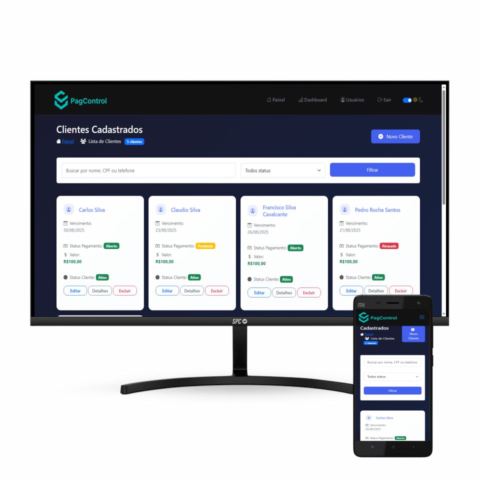 Com uma interface moderna e intuitiva, o PagControl centraliza todas as informações financeiras em um único painel, oferecendo controle total sobre cobranças, clientes e pagamentos.