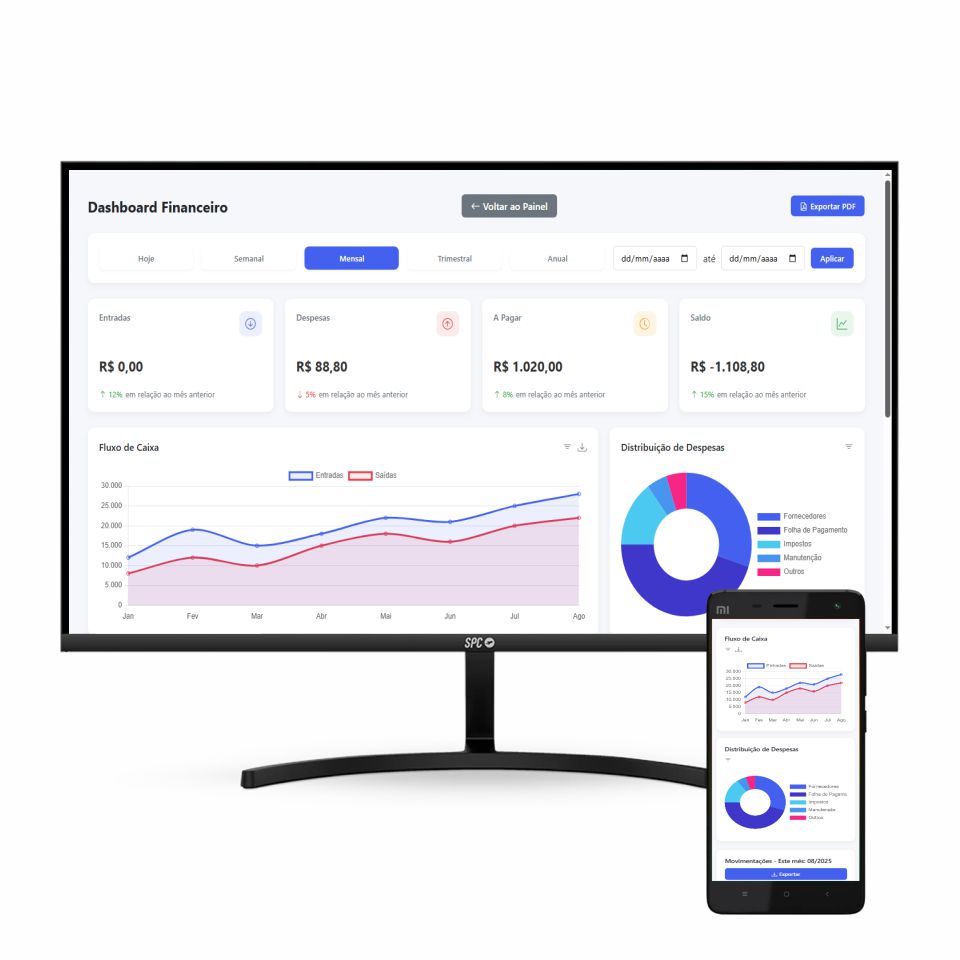 - Gestão completa de contas a pagar e fluxo de caixa.